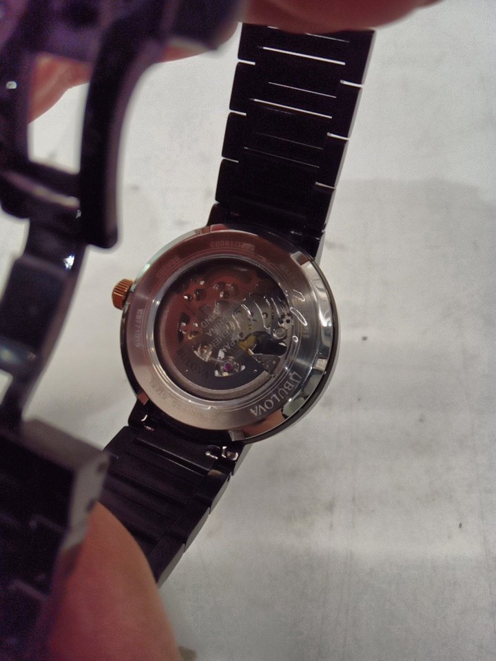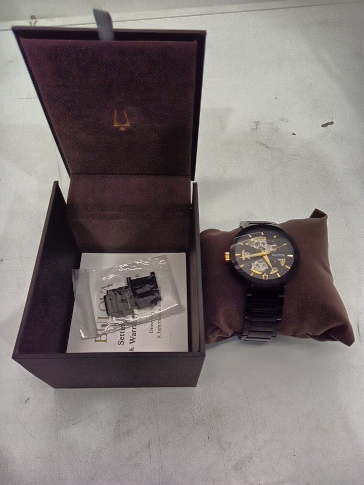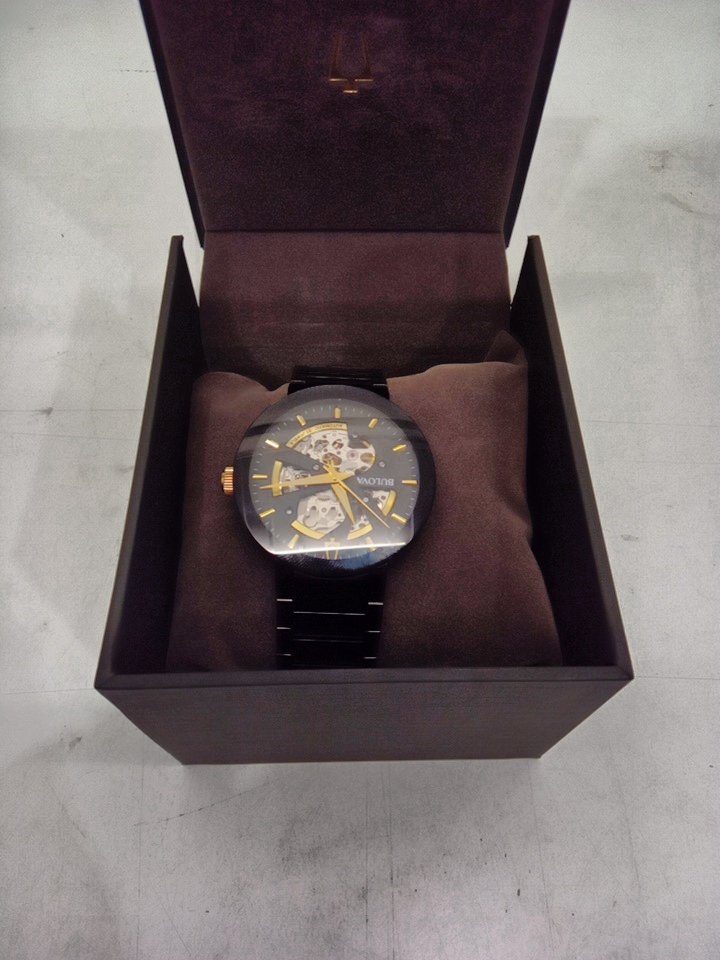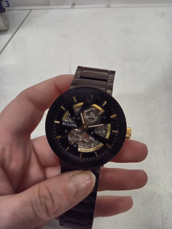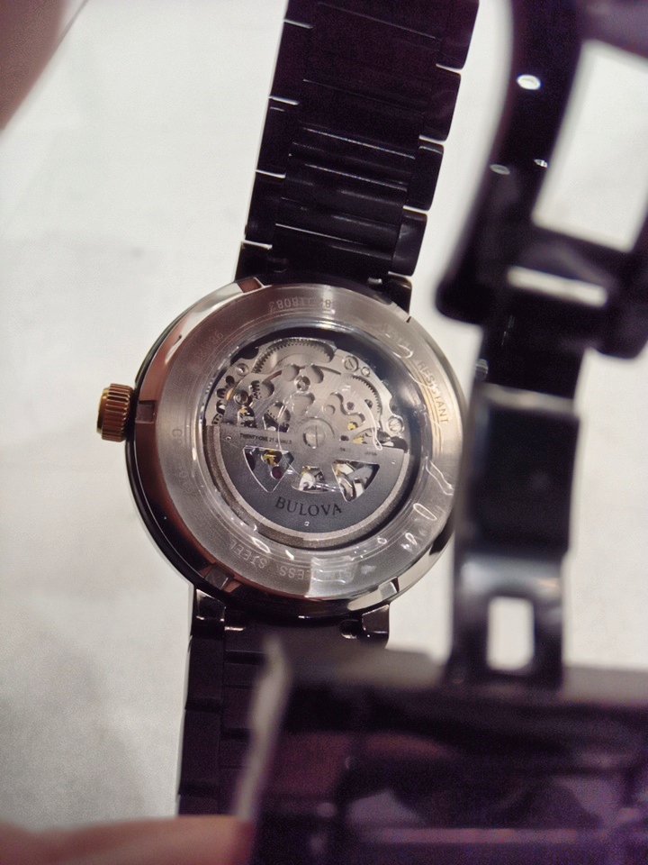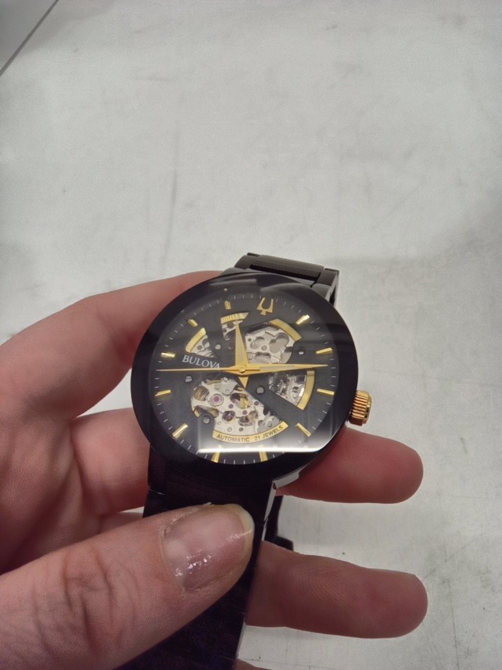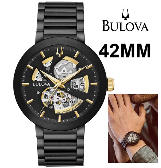 MENS bulova Modern 3-Hand Automatic Watch - Open Aperture Dial and Edge to Edge Crystal- 42mm- black ( model: c9771019)
