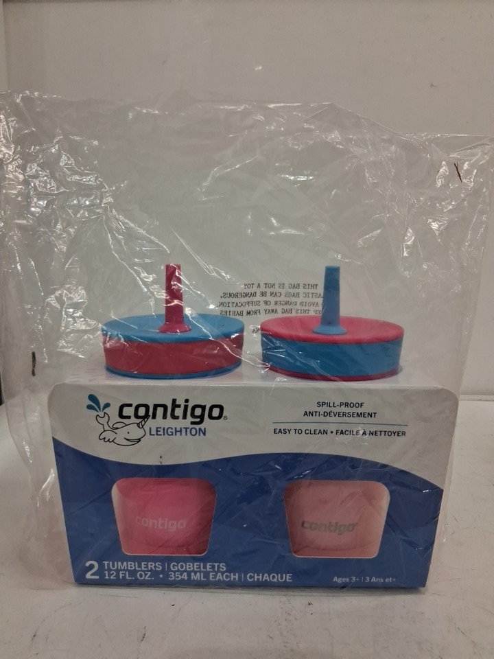 2PK CONTIGO LEIGHTON SPILL-PROOF TUMBLER WITH STRAW - 12 FL OZ - STAINLESS STEEL, Azalea & Strawberry
