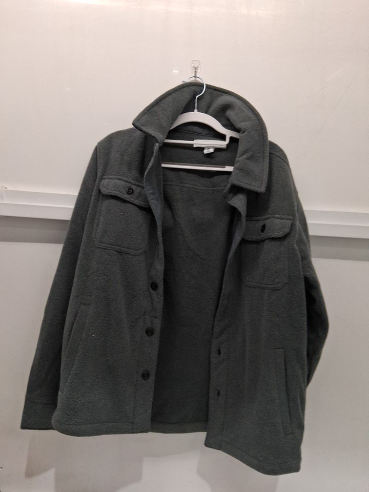 MENS AMAZON ESSENTIALS LONG SLEEVE POLAR FLEECE SHIRT JACKET - MEDIUM - CHARCOAL HEATHER
