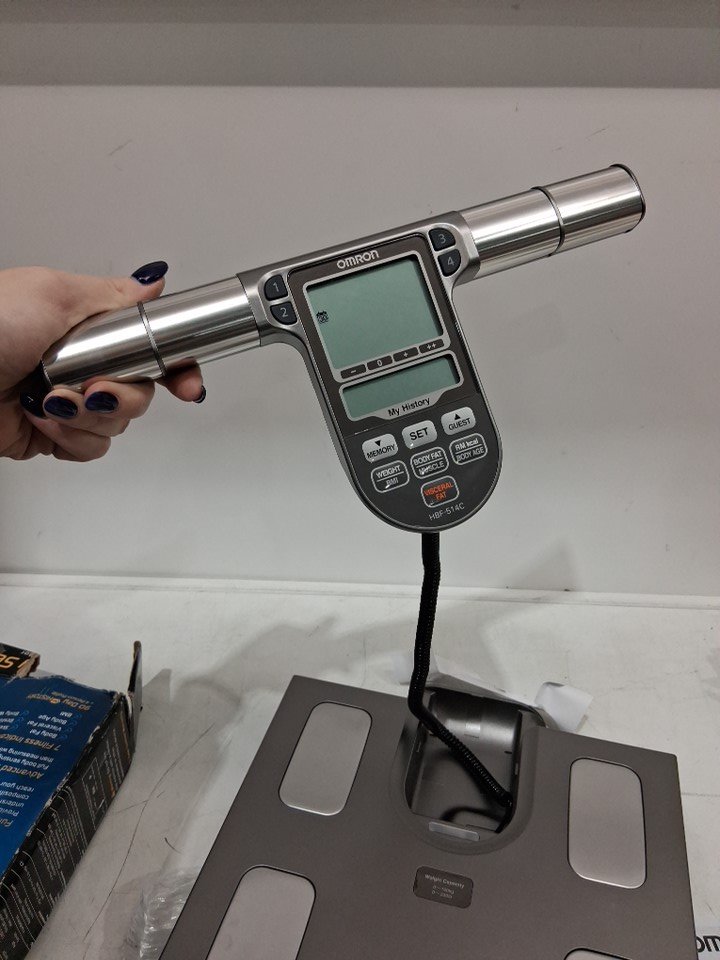 OMRON FULL BODY SENSOR WITH SCALE - 330LBS MAX - SILVER - (MODEL: HBF-514C)