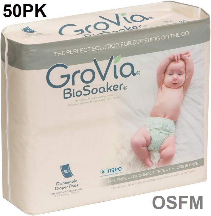 50pk GroVia 3405 Biosoaker disposable diaper pads - universal size - white (model: 2153)