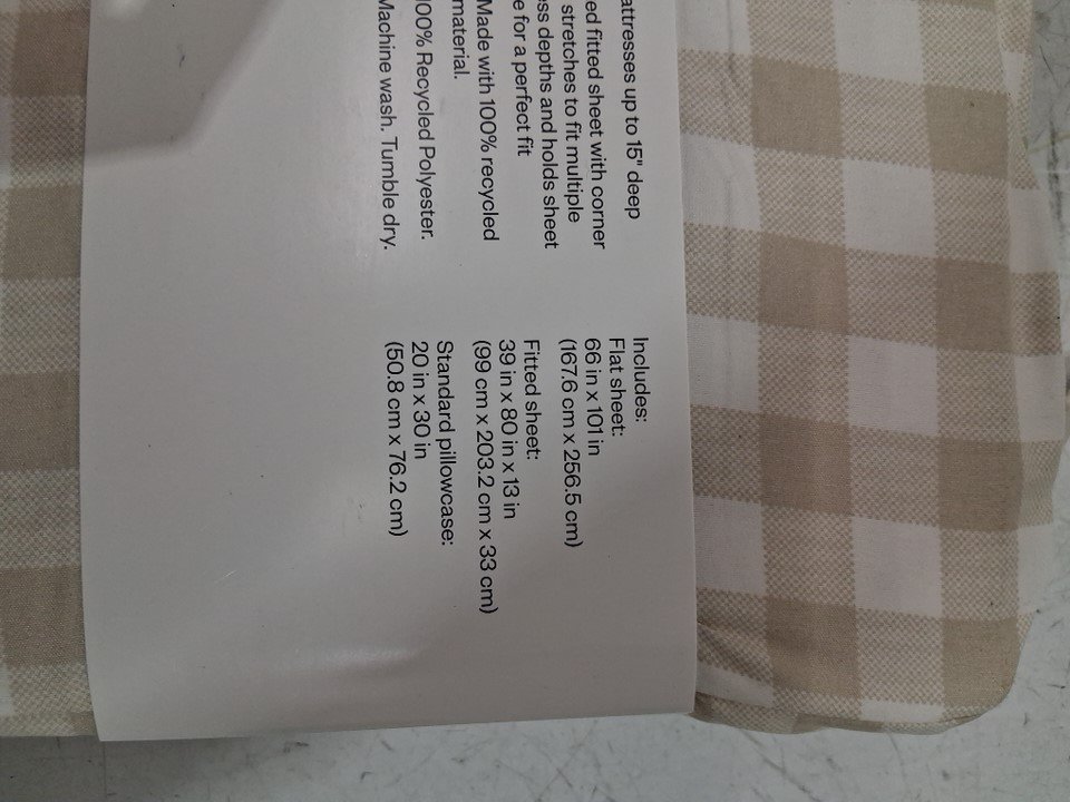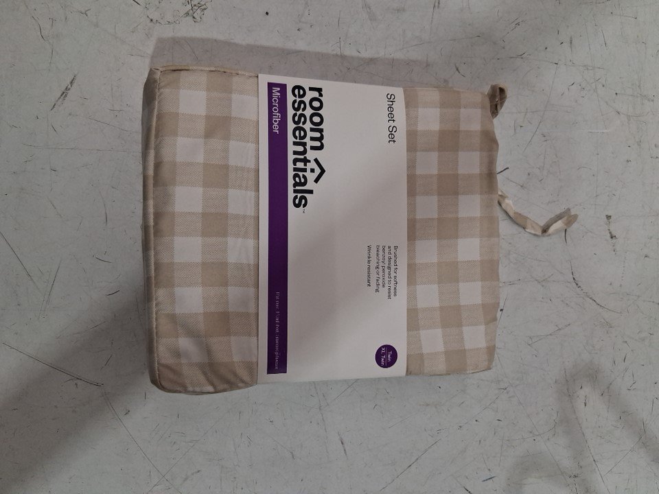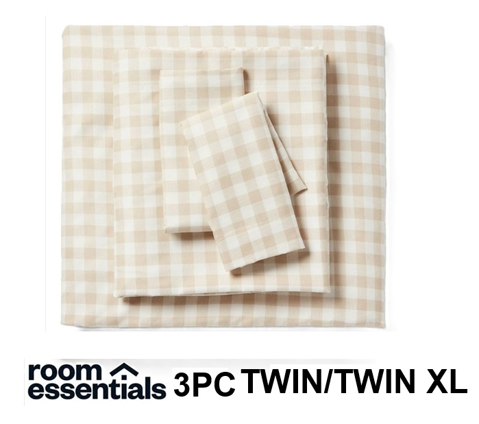 3PC ROOM ESSENTIALS Microfiber Sheet Set - twin/twin XL - Khaki Gingham