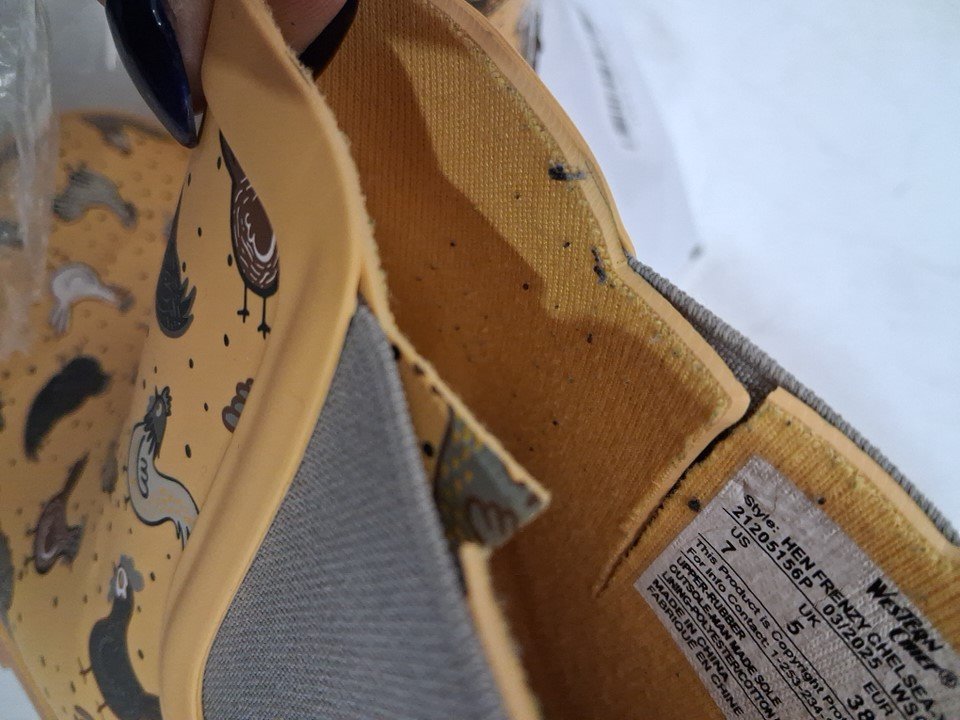 there is some dirt and mud on the bottom of the boot. as well as some on the sides. there is some lint balls on the inner boot.