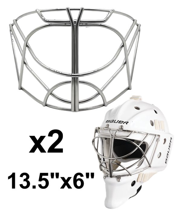 2 High Quality Stainless Steel Ice Hockey Goalie Helmet Cage - 13.5"X6" - SILVER