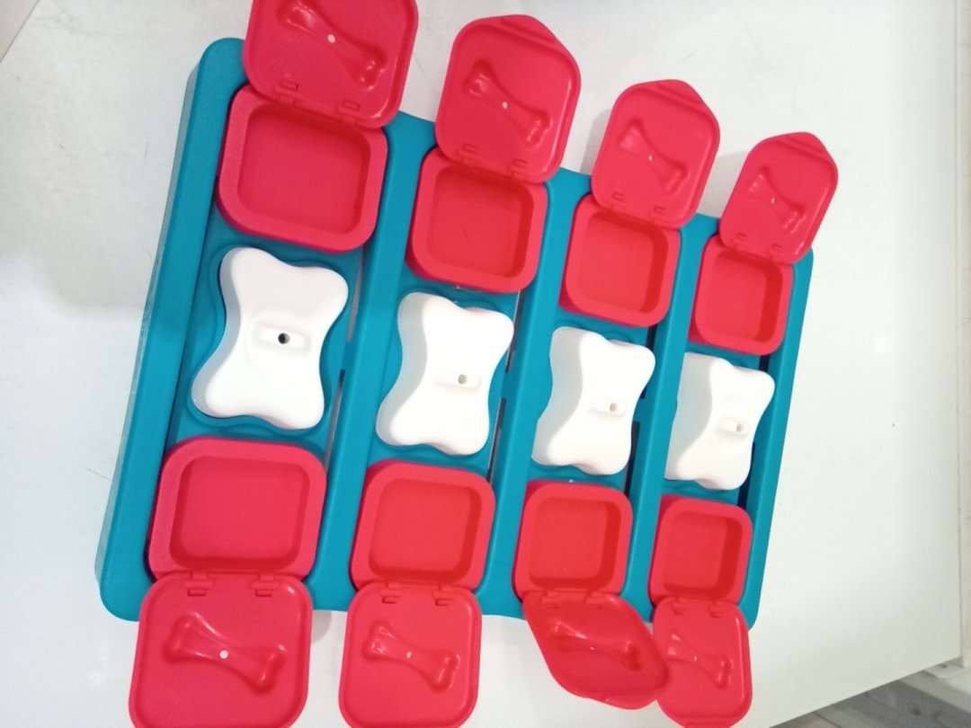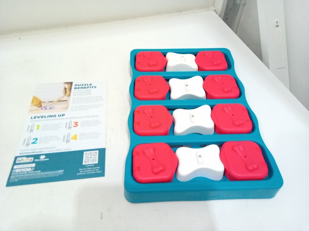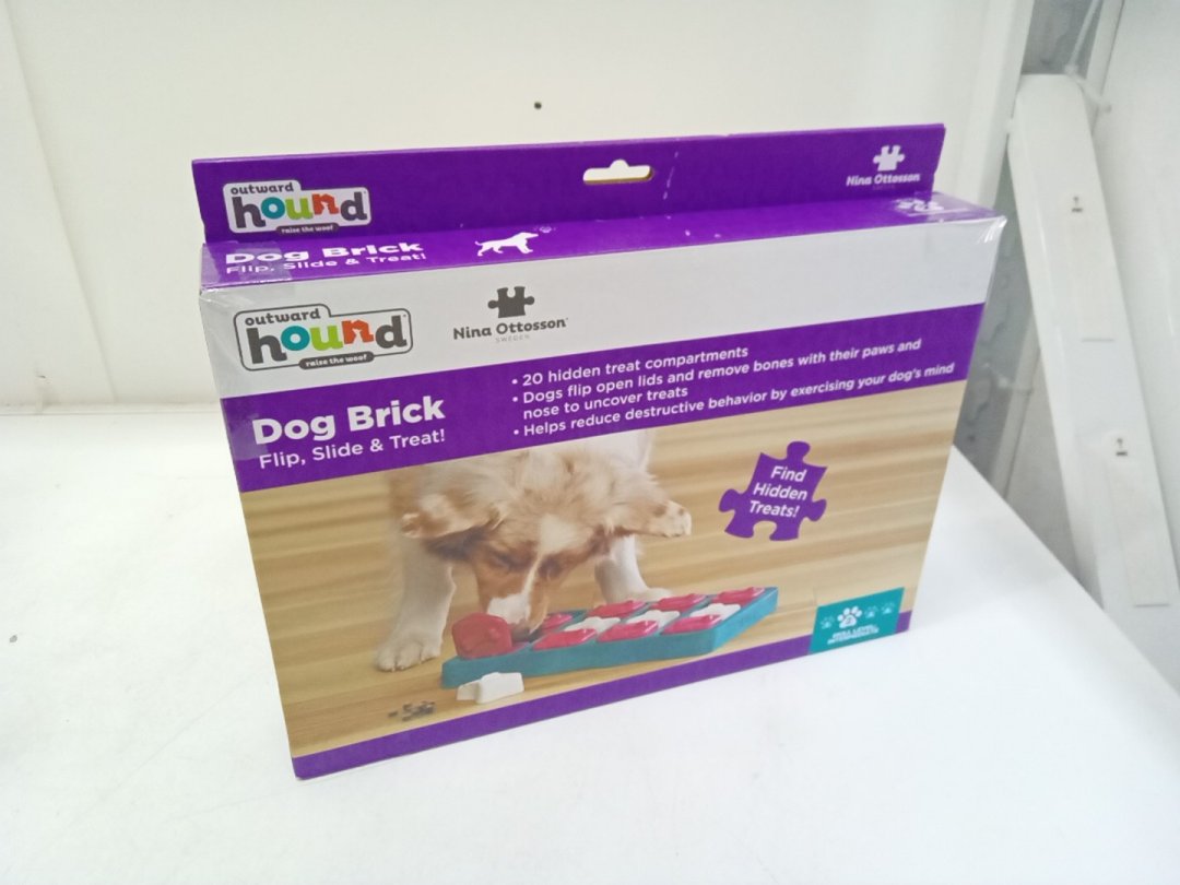 OUTWARD HOUND BRICK TREAT DISPENSING PUZZLE GAME FOR DOGS - LEVEL 2: INTERMEDIATE - BLUE/WHITE/RED (MODEL: 67333)