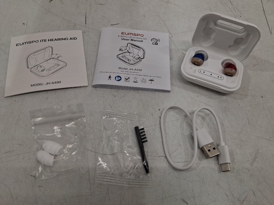 eumspo ite Hearing Aids for Seniors/the hard of hearing with charger case - Discreet & Comfortable Fit - white (model: jh-a490)