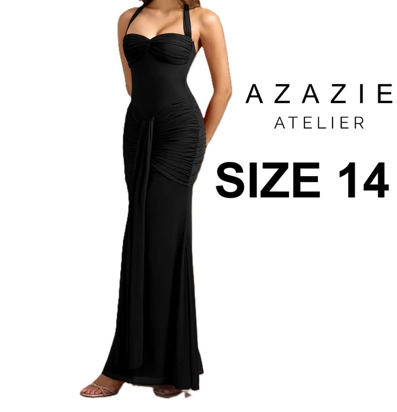women's Azazie Atelier Cassia Black Maxi Dress - size 14 - black (style: 369099)