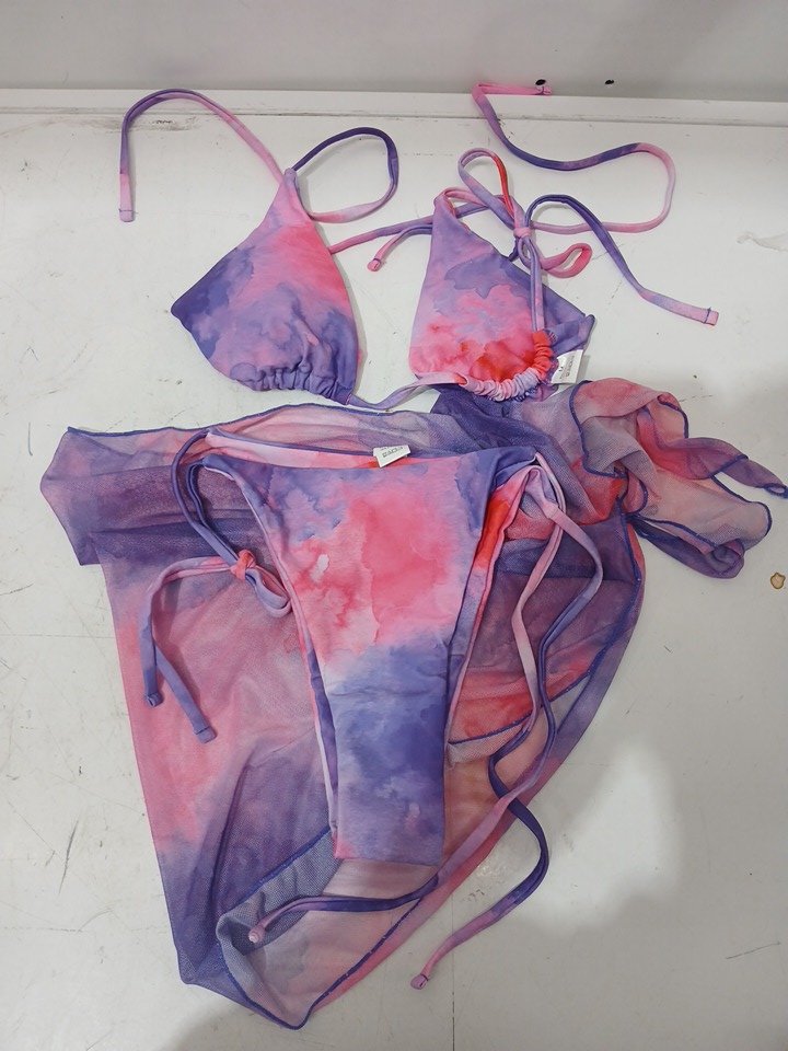 3pc women's high-waist bikini set with wrap - medium - pink/purple