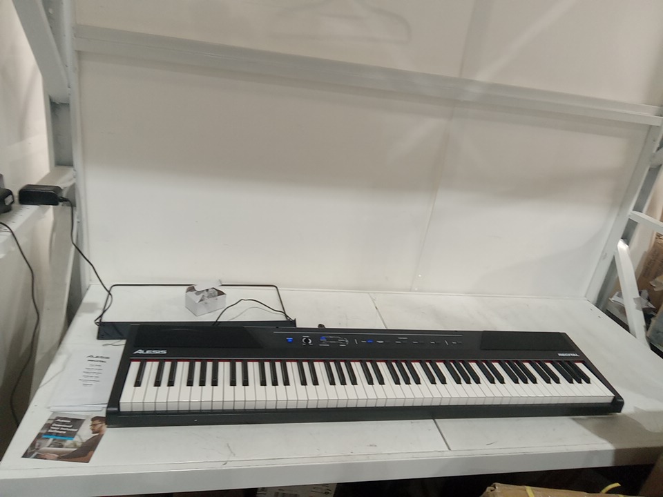alesis recital electric piano with semi weighted 88 keys, power supply, built in speakers and 5 voice modes - black