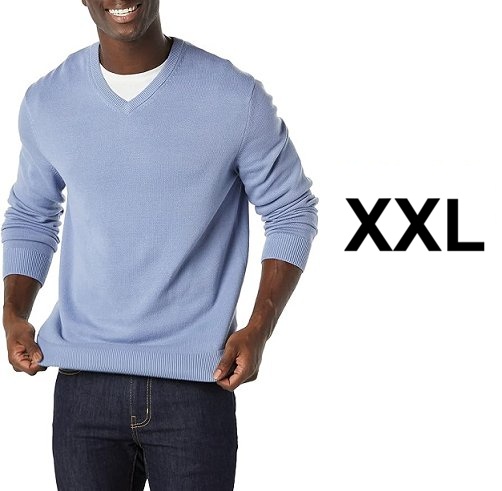 MENS AMAZON ESSENTIALS v-neck knit sweater - xxl - light blue (model: WA-8001)