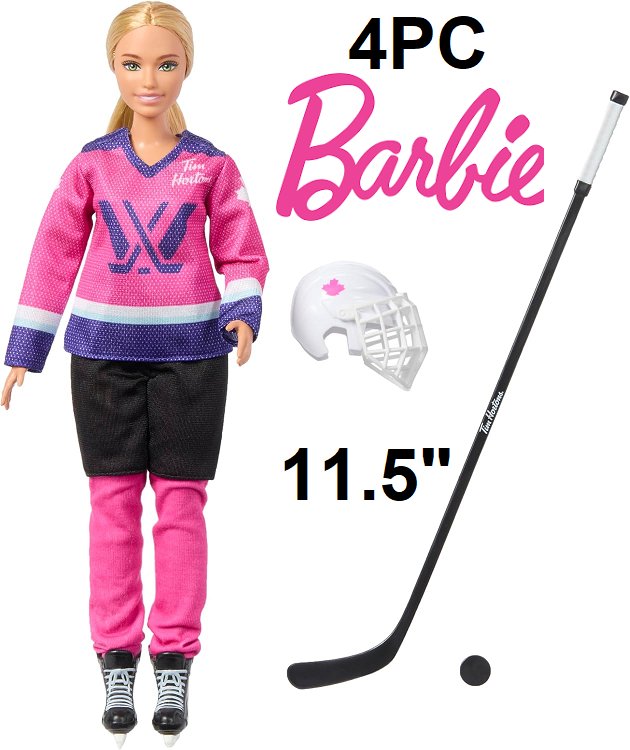 4PC Tim Hortons Barbie Mattel 2025 PWHL Hockey Player Doll Canada - 11.5" - BLONDE