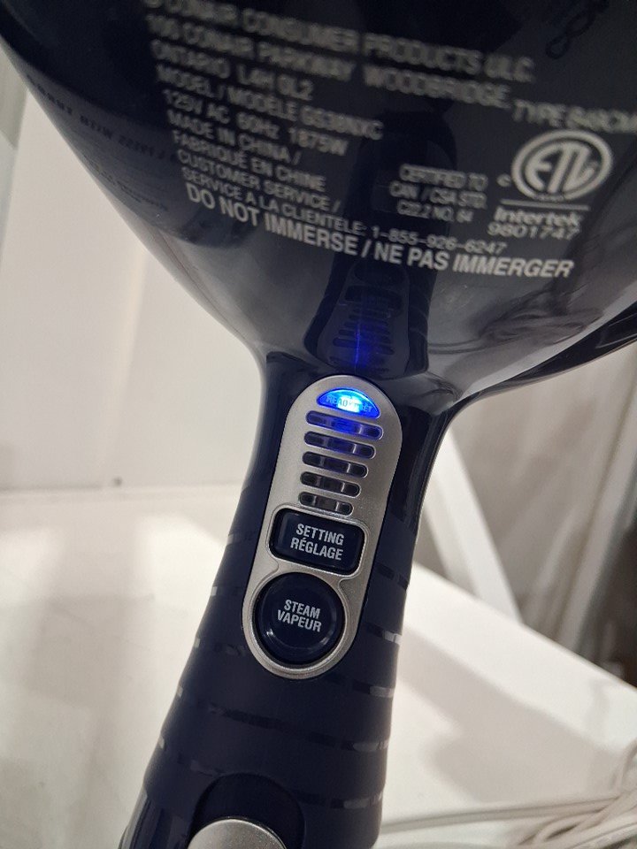 CONAIR TURBO EXTREME STEAM AND PRESS HANDHELD FABRIC STEAMER with built in stand - 1875 WATTS - BLUE - (MODEL: GS38NXC)