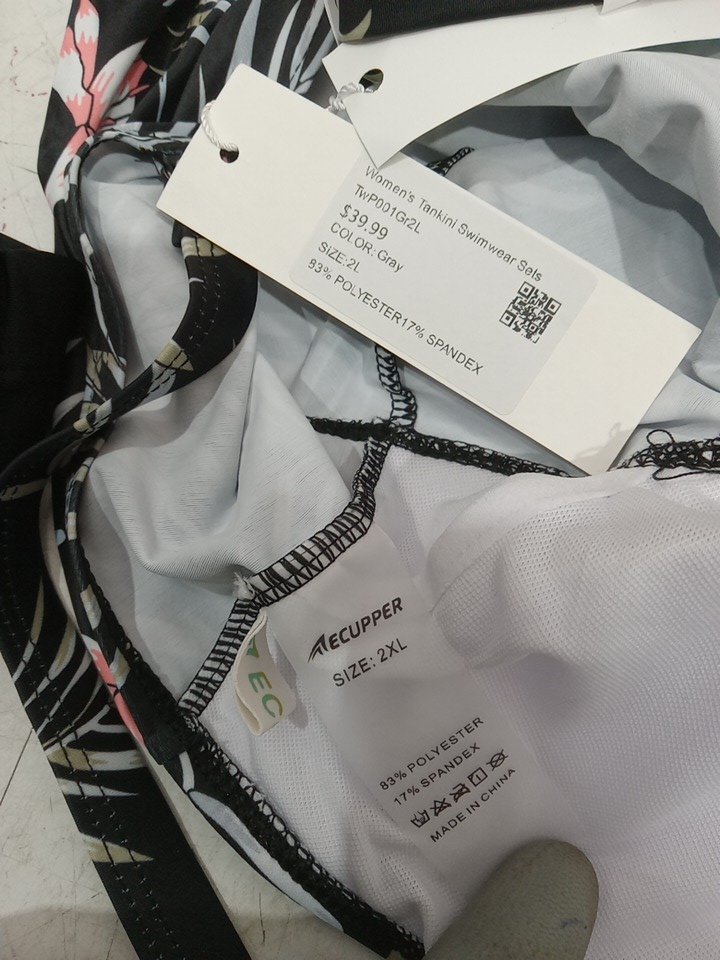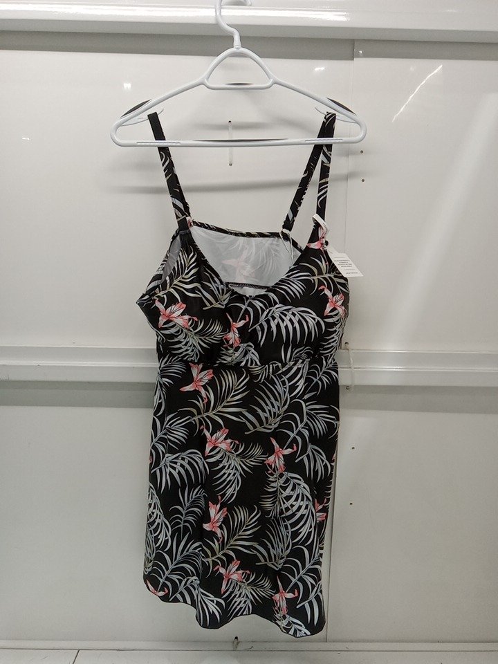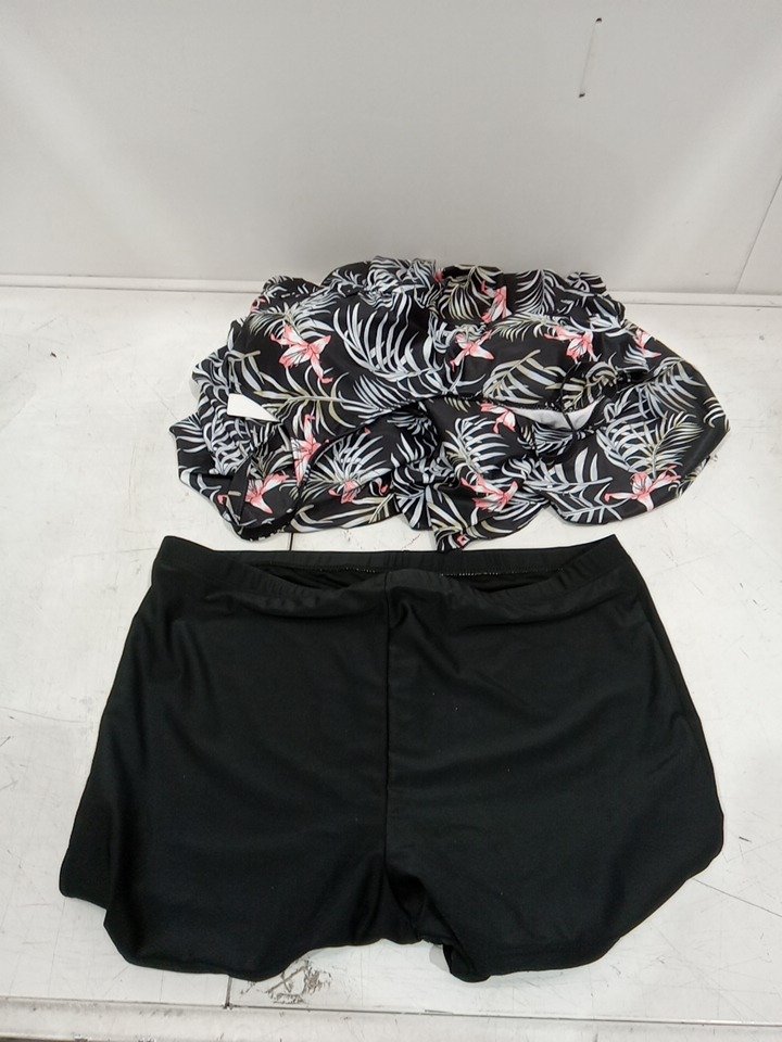 2pc womens ecupper Flowy Tankini Swimwear Set with boy shorts - 2xl - black/PINK leaf