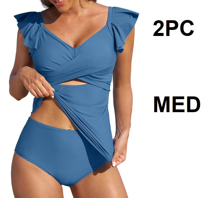 2PC TANKINI CUT OUT SWIM SUIT - MEDIUM - PALE BLUE