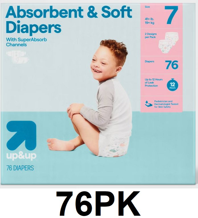 76PK up&up disposable absorbent and soft diapers - size 7 (41+lbs)