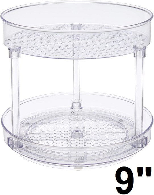 amazon basics 2-tier lazy susan turntable storage organizer - 9" round - clear