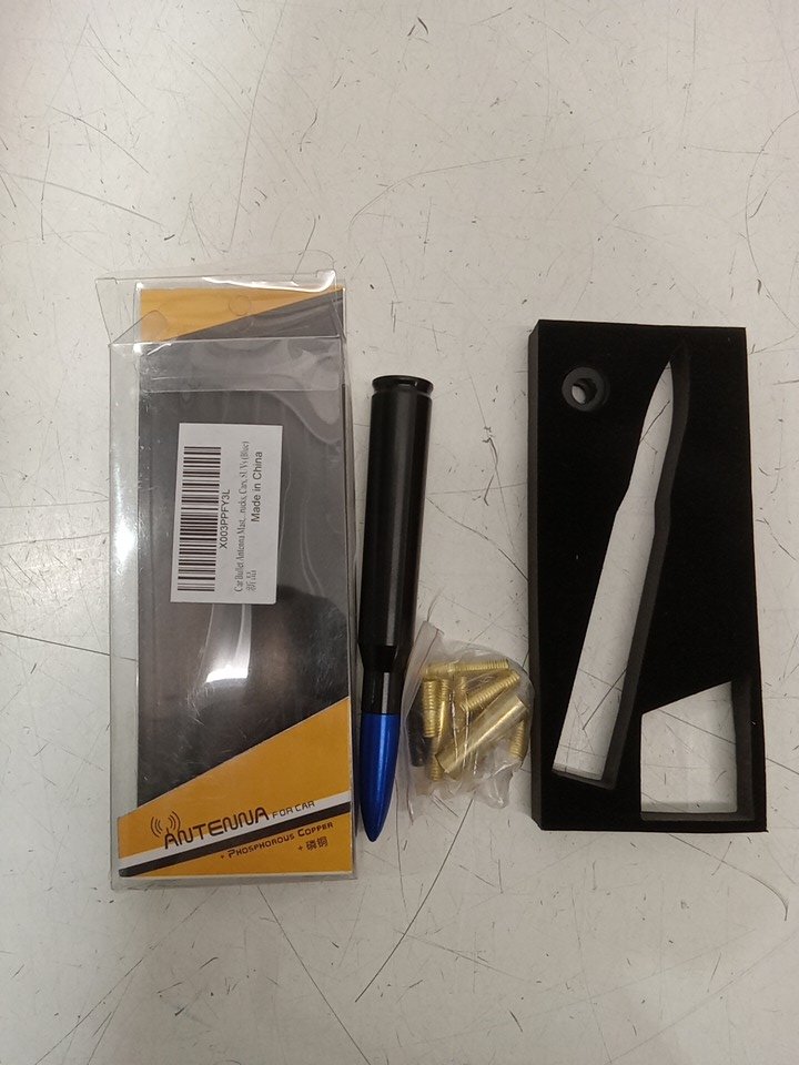 50 Cal Bullet Antenna Mast ornament Short Radio Antenna Replacement - Fits Various Ford, Dodge, Toyota Cars/Trucks - 5.5" - Black/blue