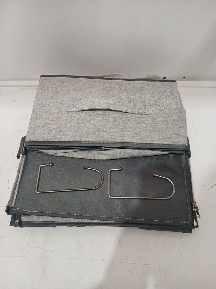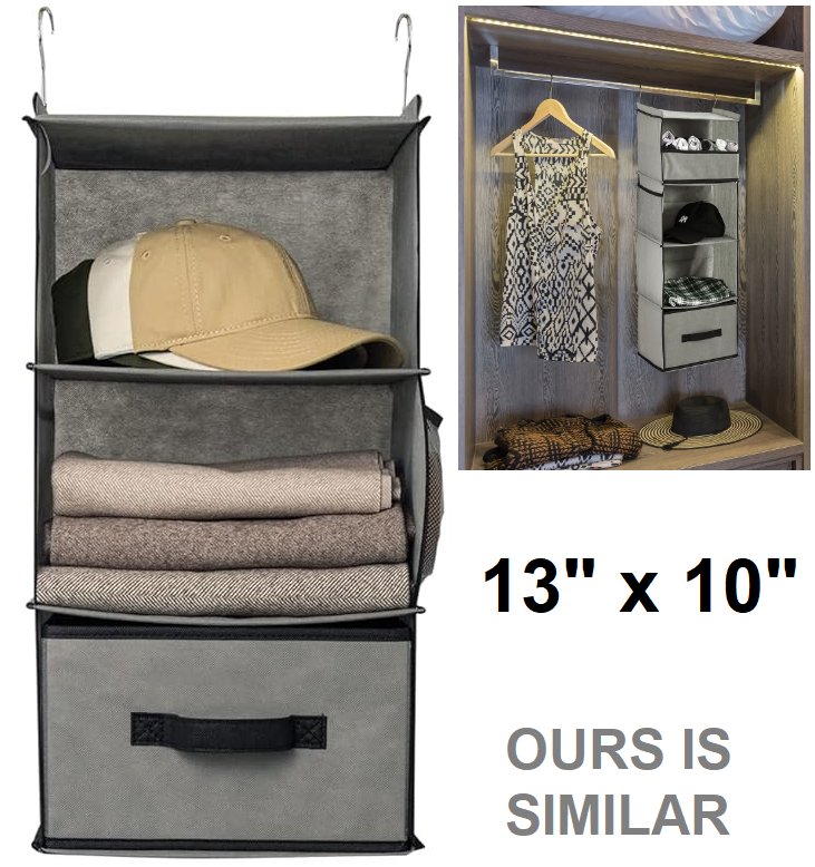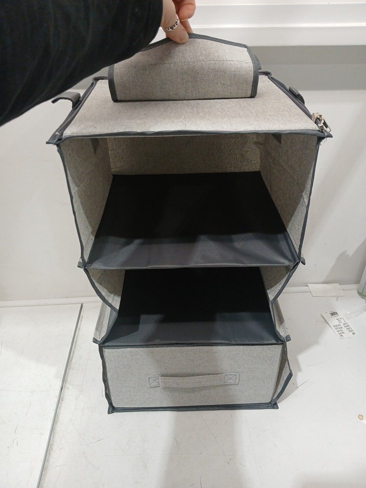 hanging 3-tier closet organiser with bin - 13"x10"w - grey