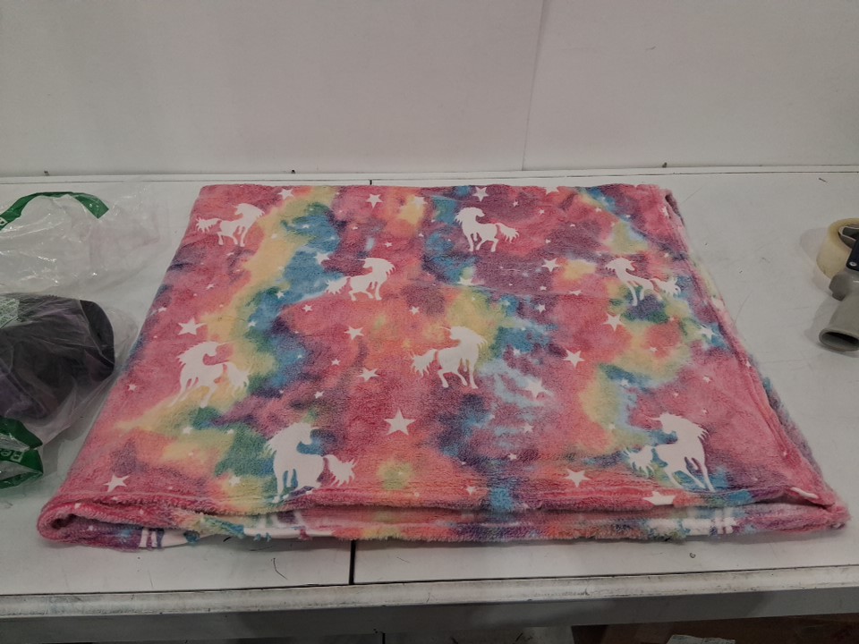 kids unbranded magic Glow in the Dark plush Unicorn Blanket - 60" x 80" - multicolour