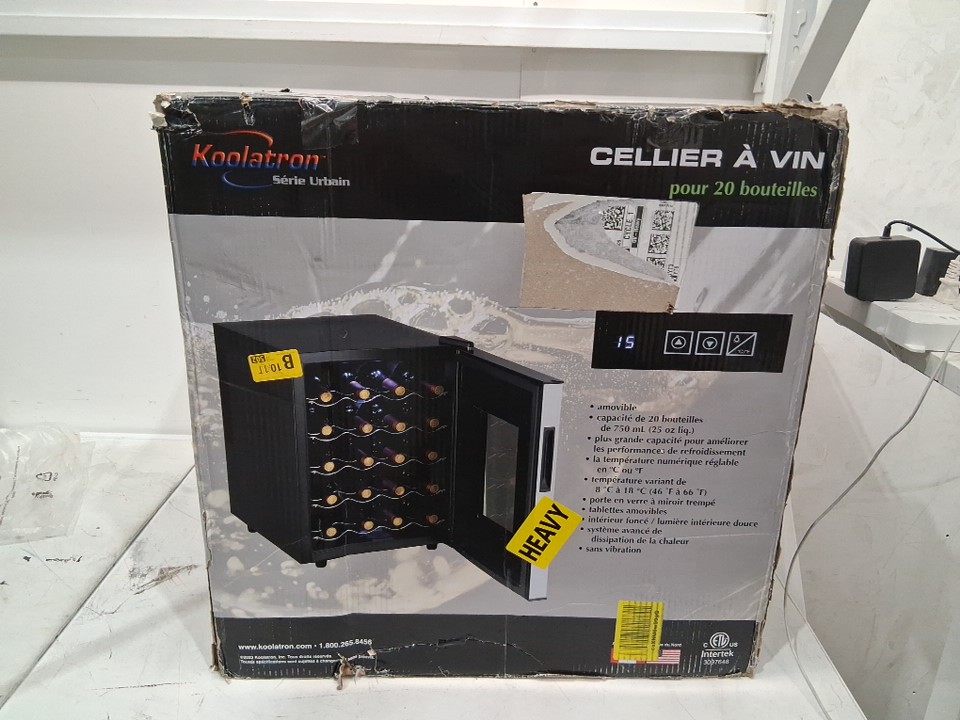 KOOLATRON DIGITAL THERMOELECTRIC WINE COOLER WITH MIRRORED GLASS DOOR - 20-BOTTLE CAPACITY - SILVER/BLACK (MODEL: Wc20)-