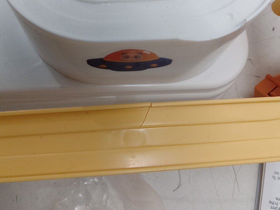 The one track is slightly cracked along the edge.