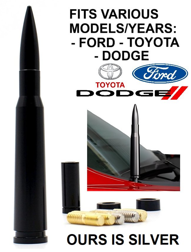 Bullet Antenna Mast ornament Short Radio Antenna Replacement - Fits Various Ford, Dodge, Toyota Cars/Trucks - 5.5" - silver