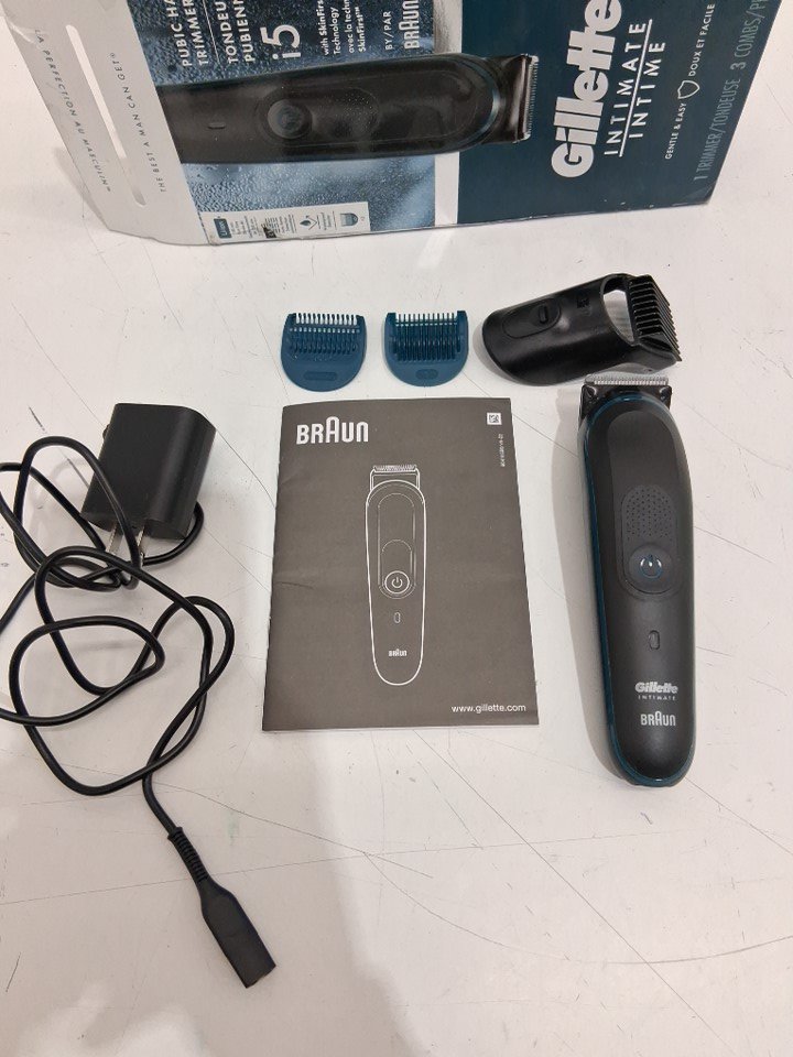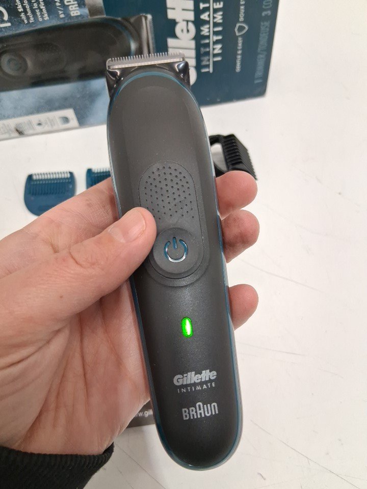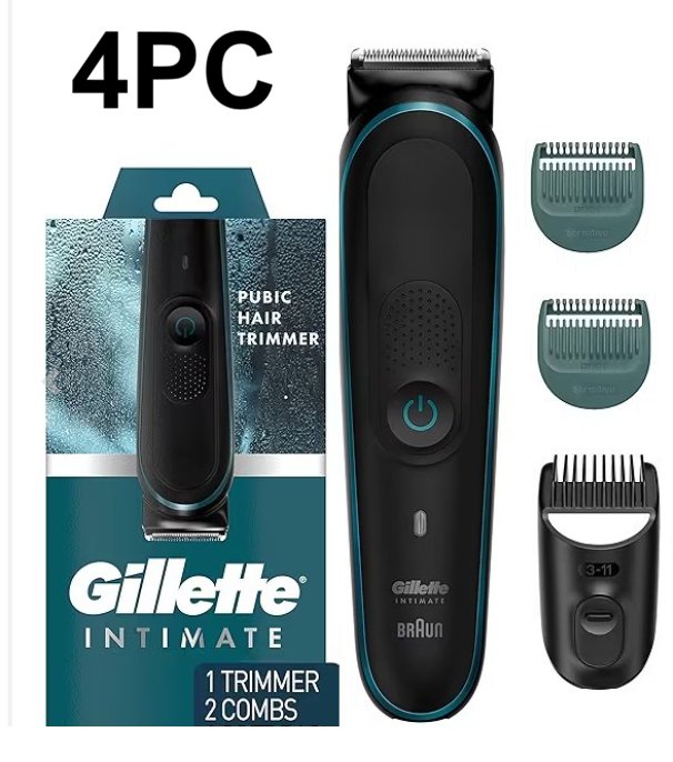 4PC MEN'S GILLETTE Intimate Pubic Trimmer Waterproof, Cordless for Wet/Dry Use - Black/Blue (model: 5544)