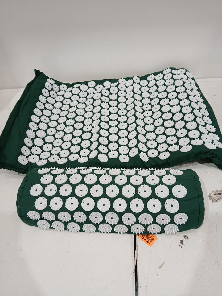 2pc sivan back and neck pain relief acupressure mat & pillow set - green/white