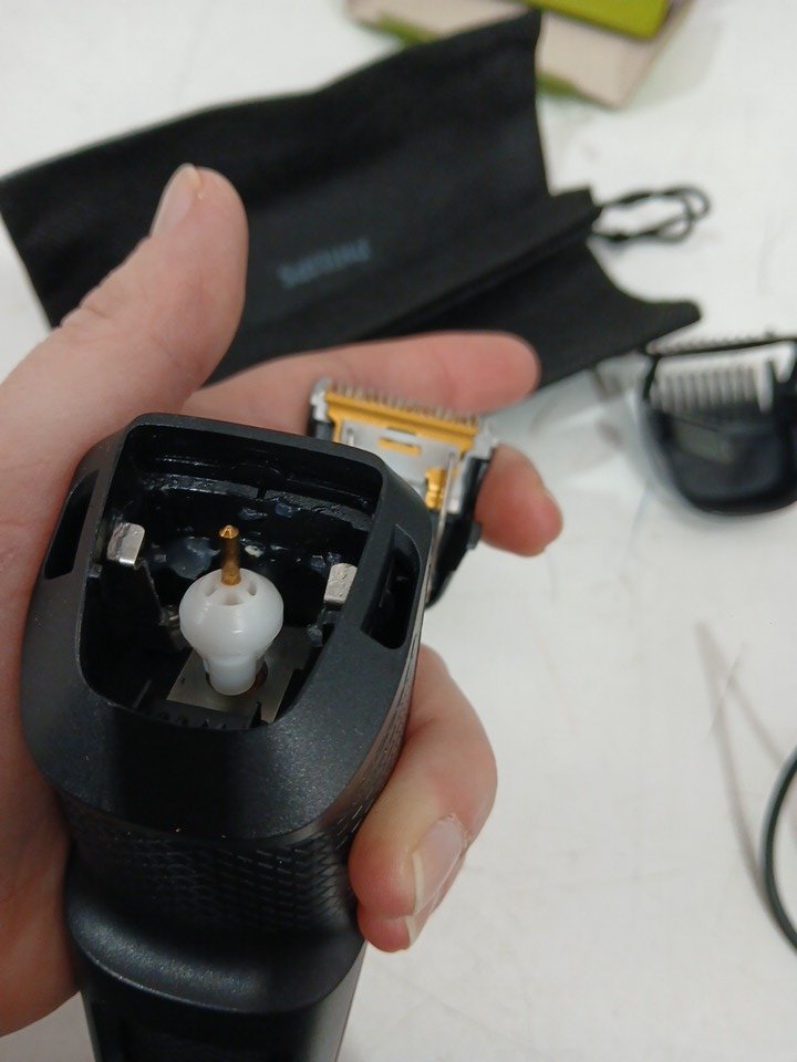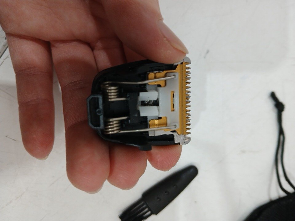 Has some minor hairs in the blade and the power cord is missing.