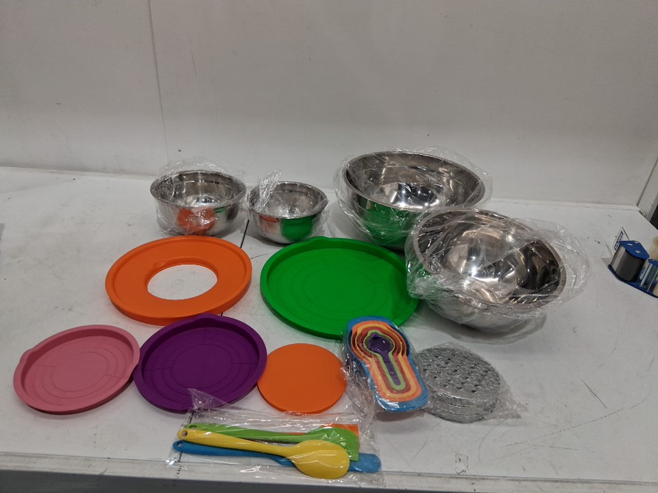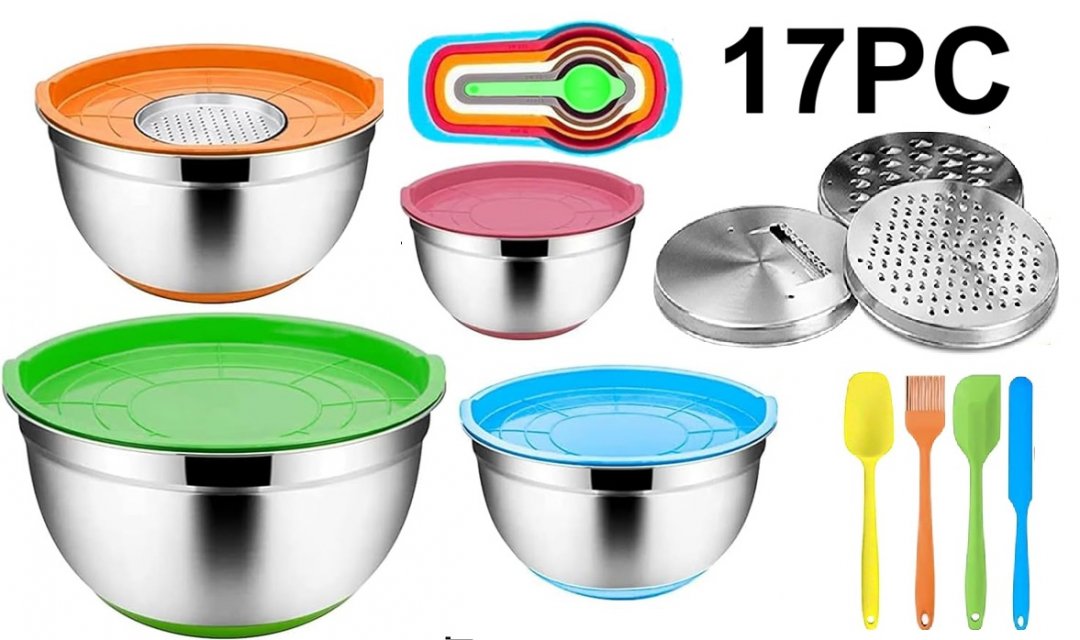 17PC Menbyci Mixing Bowls with Lids Grater and prepping Attachment - assorted sizes - multicolor