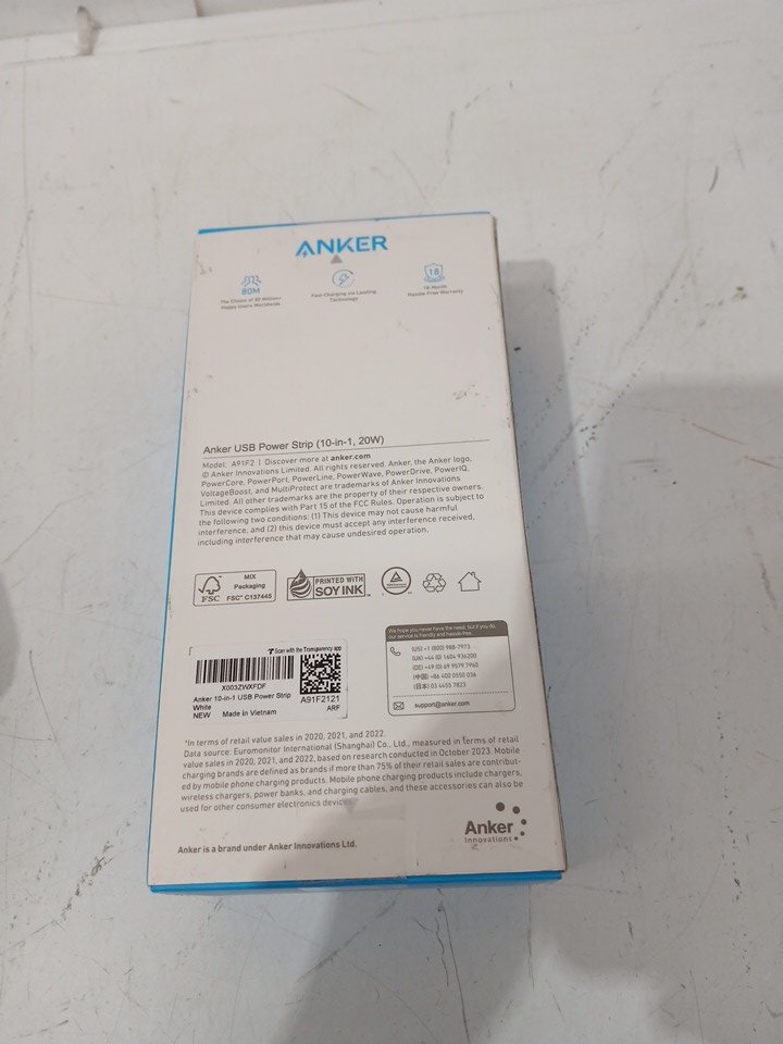 Anker 10-in-1 Ultra Thin Power Strip Extension Cord - with 6 AC, 2 USB-A/2 USB-C port - 5ft - white (MODEL: A91f2)