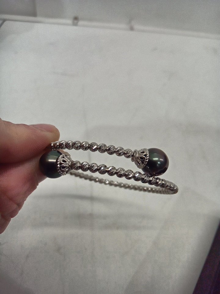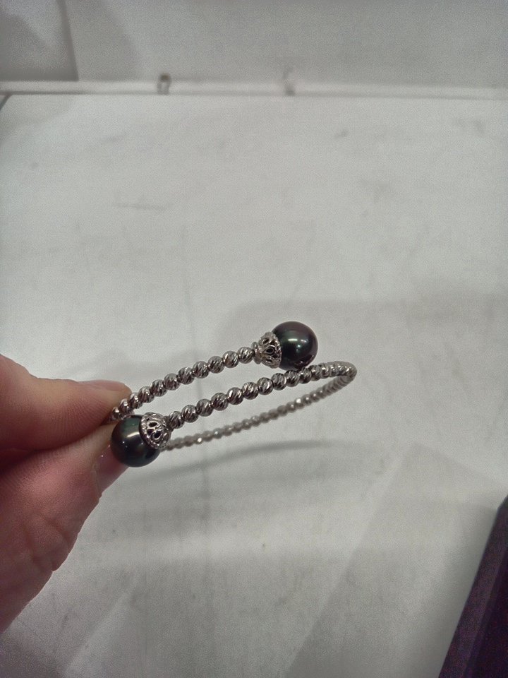 WOMENS jtv jewelry Cultured Tahitian Pearl Rhodium Bangle - stainless steel