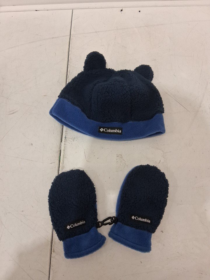 unisex toddler Columbia rugged ridge beanie/hat and mitten/gloves set - one size fits most - blue