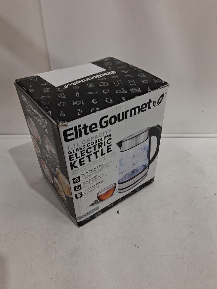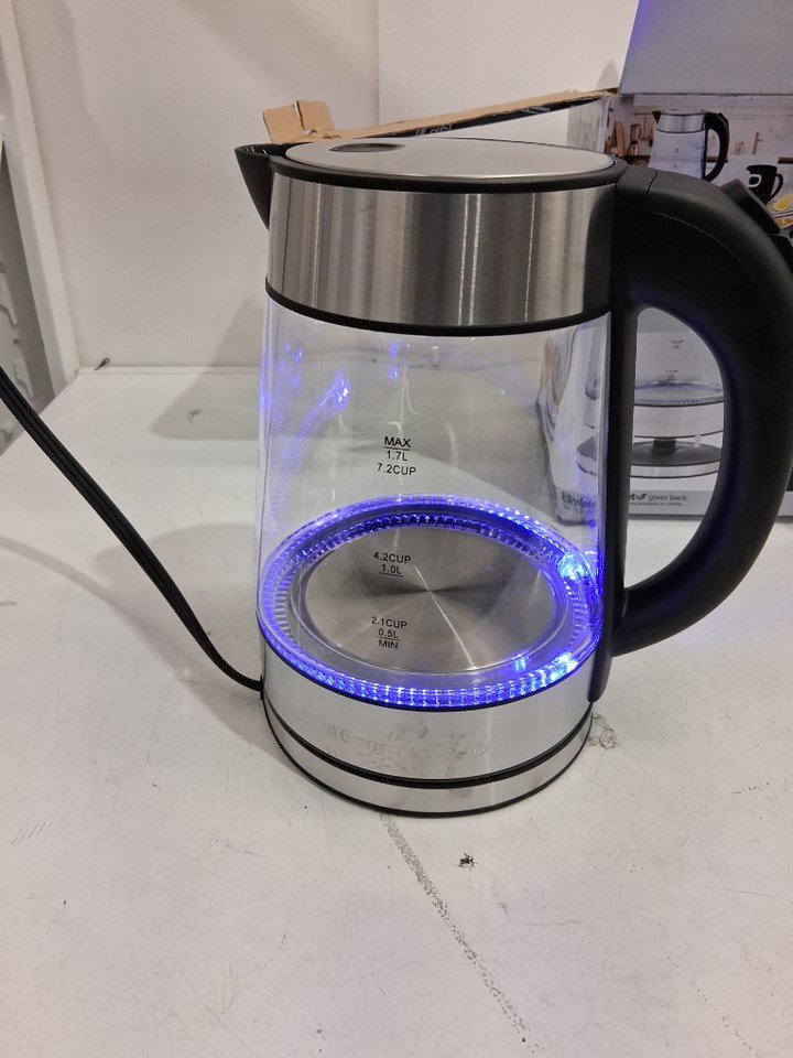 Water stains indicate, use, slight scuffs on top of kettle. tested for power.