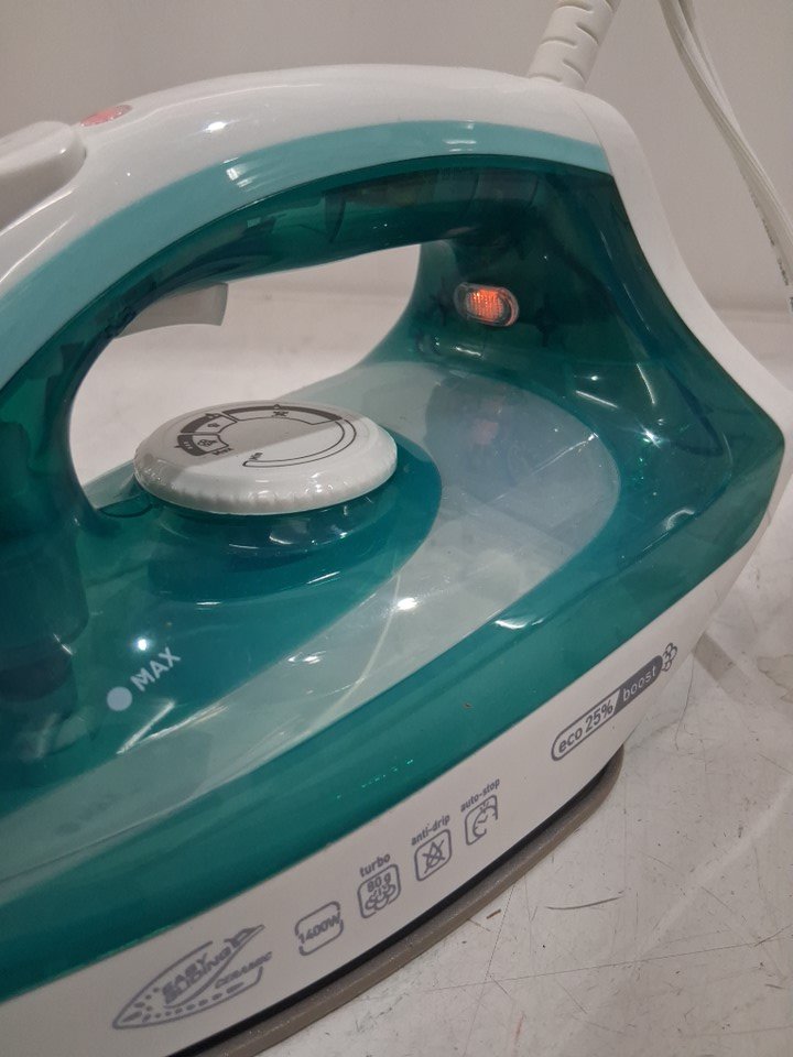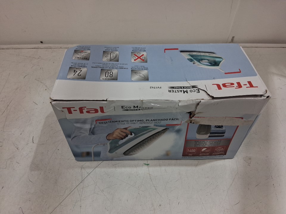 T-FAL ECO MASTER QUICK AND EASY CLOTHING STEAM IRON WITH EASY GLIDE CERAMIC SOLEPLATE - 1400W - BLUE/WHITE (MODEL: FV1742)