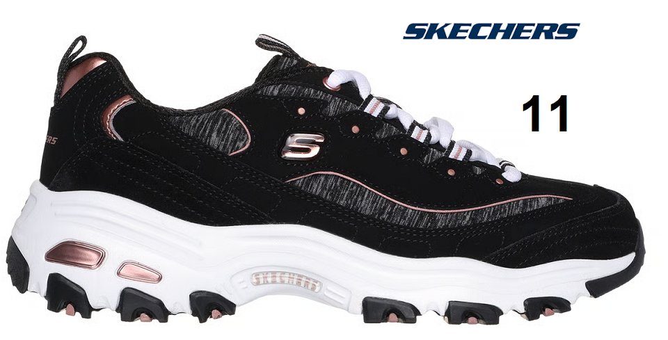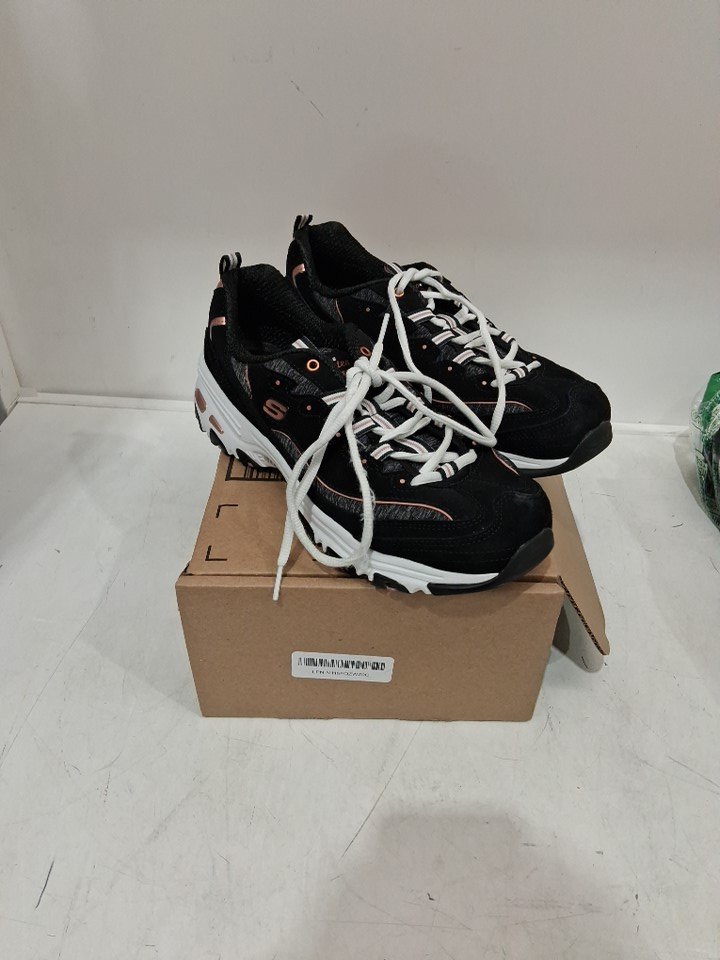 WOMEN SKETCHERS D'LITES - ME TIME LACE UP SHOE - SIZE 11 - ROSE GOLD/BLACK