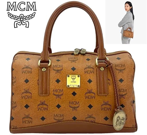 WOMENS MCM Boston leather handbag - 11" - BROWN/GOLD