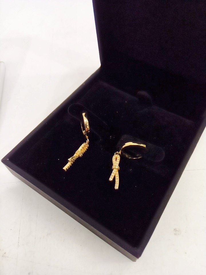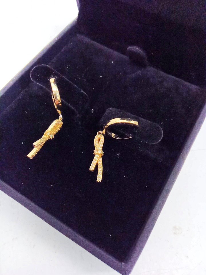 1PR womens dainty bow all tied up dangle earrings - gold plated