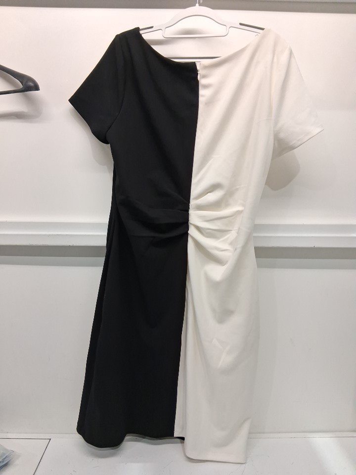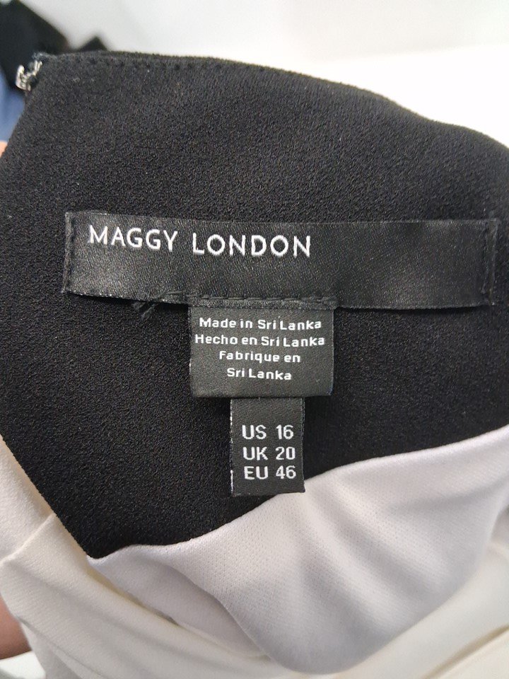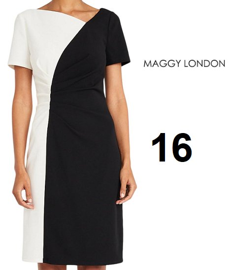 Women's Maggy London short sleeve asymmetric V-neck dress - Size 16 - Black/white