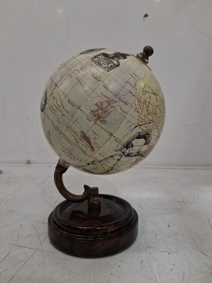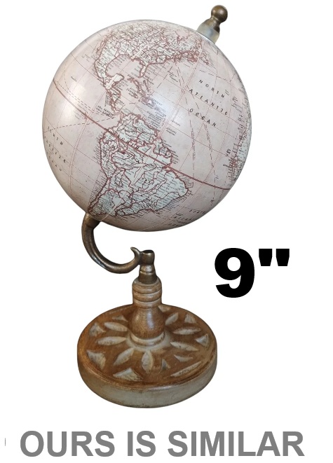 Table World Globe Decor with Decorative Wood Base-9"- brown/beige/black