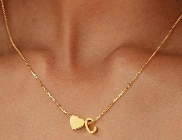 womens nonokos heart "c" initial necklace - 18k gold plated