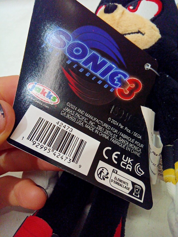 JAKKS PACIFIC SONIC THE HEDGEHOG 3 SHADOW PLUSH - 9" (MODEL: 42473)