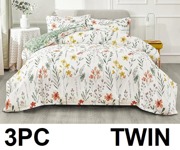 3PC Duvet Cover WITH PILLOW COVER - TWIN - Green-pastoral