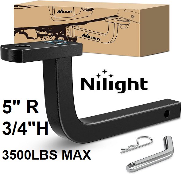 Nilight Trailer Hitch Ball Mount - 3500LBS MAX/ 5" rise/3/4" hole - Black