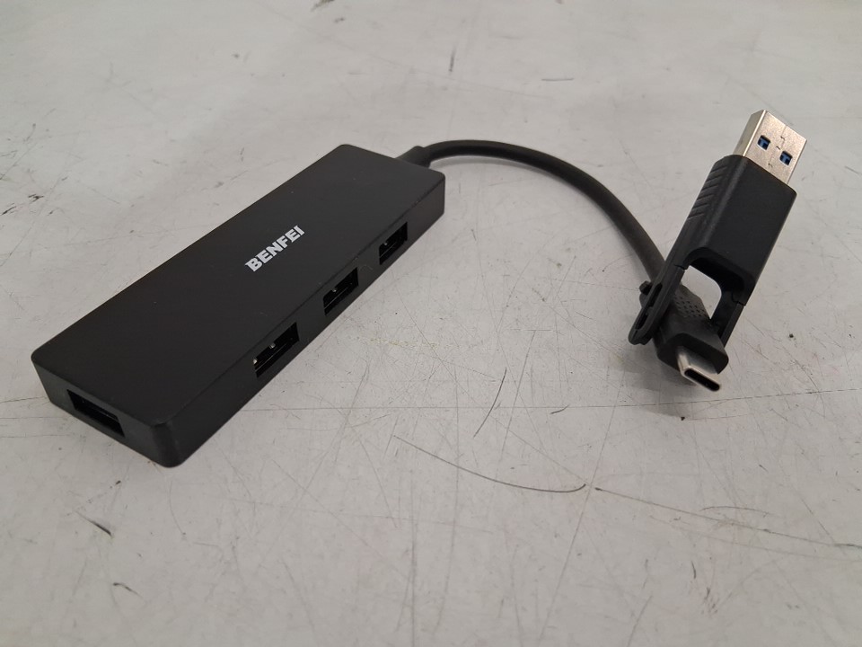 BENFEI 4-Port Ultra-Slim USB 3.0 Hub Expander Adapter for Laptop, Desktop, and Console with USB A/C Adapter - Black