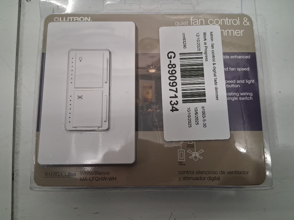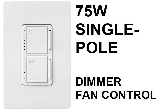 Lutron Mastro fan control and light dimmer with wallplate for dimmable LED bulbs - 75W - Single Pole - White (model: ma-lfqhw-wh)