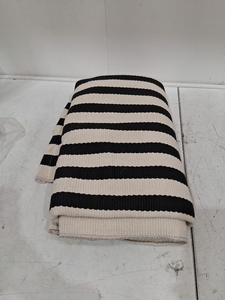 INDOOR/OUTDOOR MODERN WASHABLE WOVEN STRIPED AREA RUG - 4FT X 6FT - BLACK/WHITE