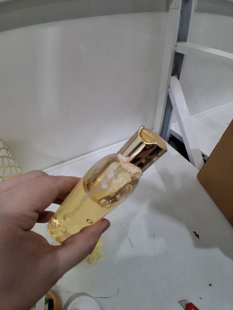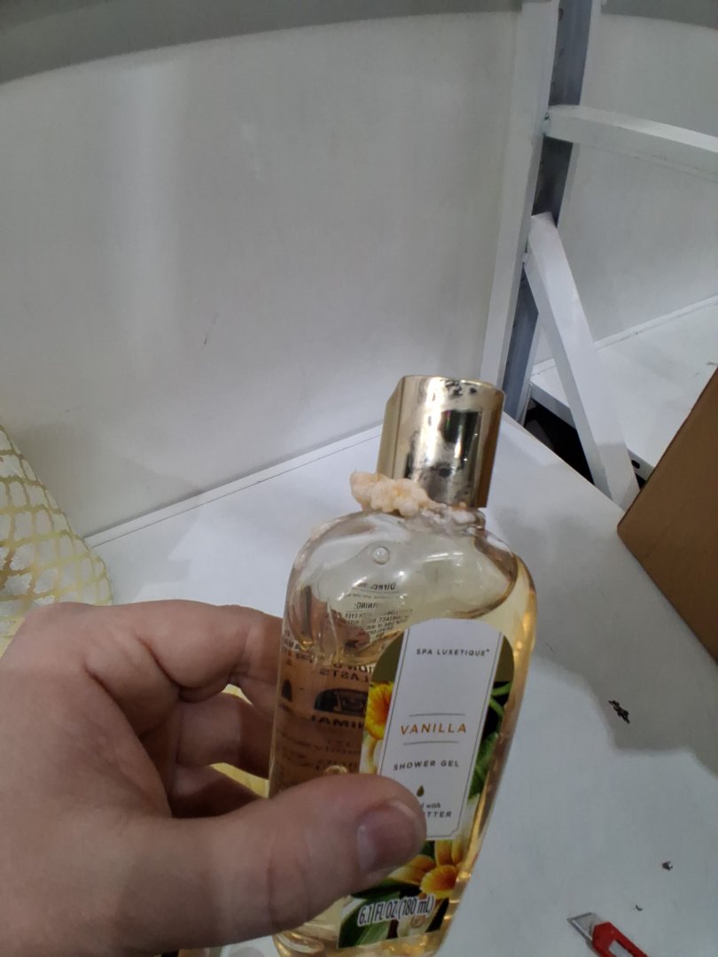 Item's shower gel bottle has mild leakage and has product build up on outside of bottle. Resulting in a 1/4 of the contents to be missing.