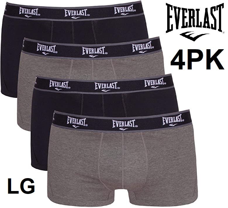 4PK MEN'S EVERLAST BOXER BRIEF TRUNKS -LARGE - BLACK/GREY