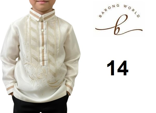Boys Barong World Angelito Collection Tagalog Shirt - 14 - Cream/Beige